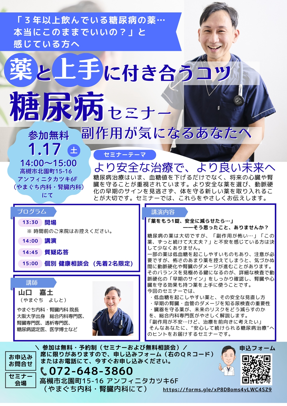 1月17日(土)に糖尿病セミナーを開催します。詳しくはこちら - 25.12.22